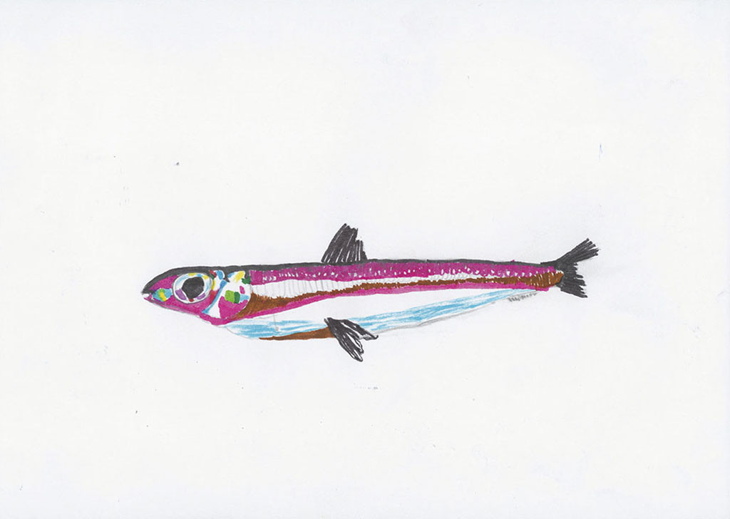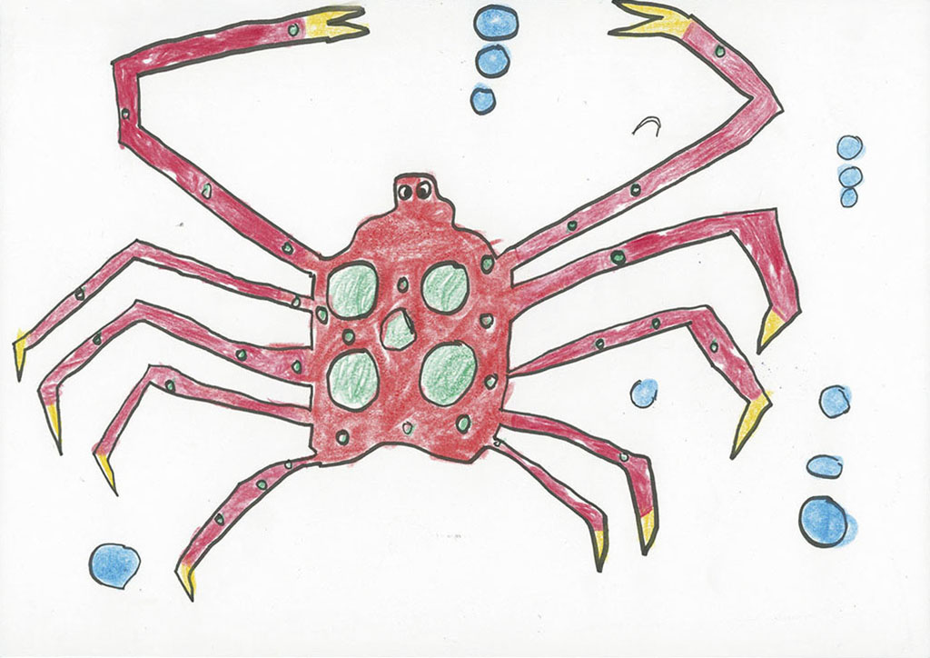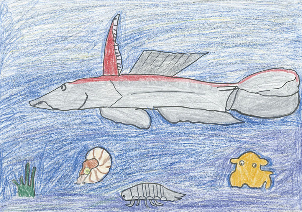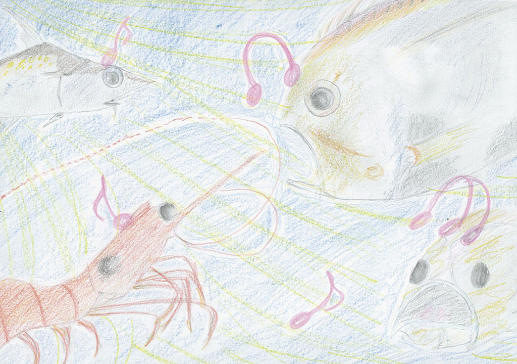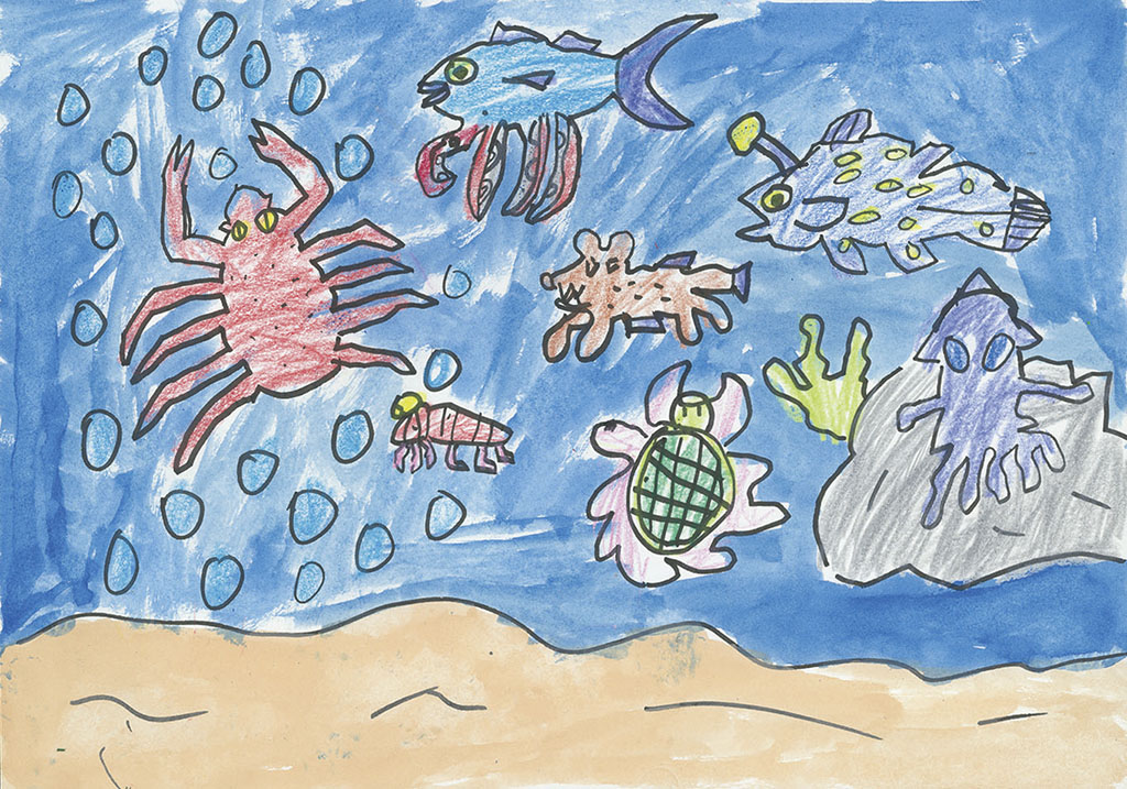 のびのびと描きながらも特徴をとらえていてグッド!深海でラジオを聴いている発想も面白いです。
